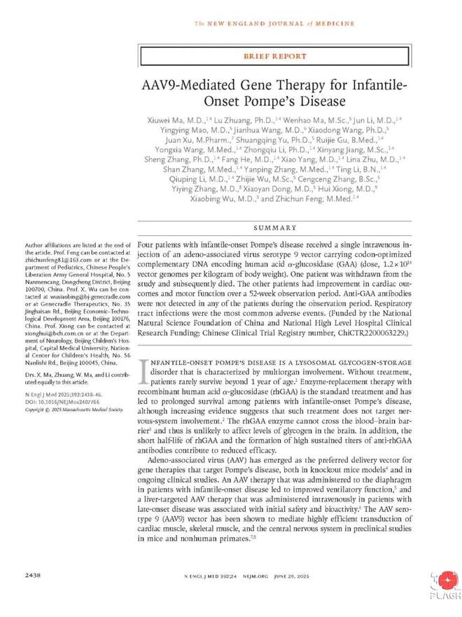 kaiyun平臺(tái)官網(wǎng)登錄 開云網(wǎng)站近日,總醫(yī)院第七醫(yī)學(xué)中心封志純教授團(tuán)隊(duì)聯(lián)合多家單位研發(fā)的全球首款嬰兒型龐貝病基因治療藥物臨床研究成果,以原創(chuàng)論著形式發(fā)表于國(guó)際頂級(jí)醫(yī)學(xué)期刊《新英格蘭醫(yī)學(xué)雜志》(NEJM,2024年影響因子98.2),標(biāo)志...